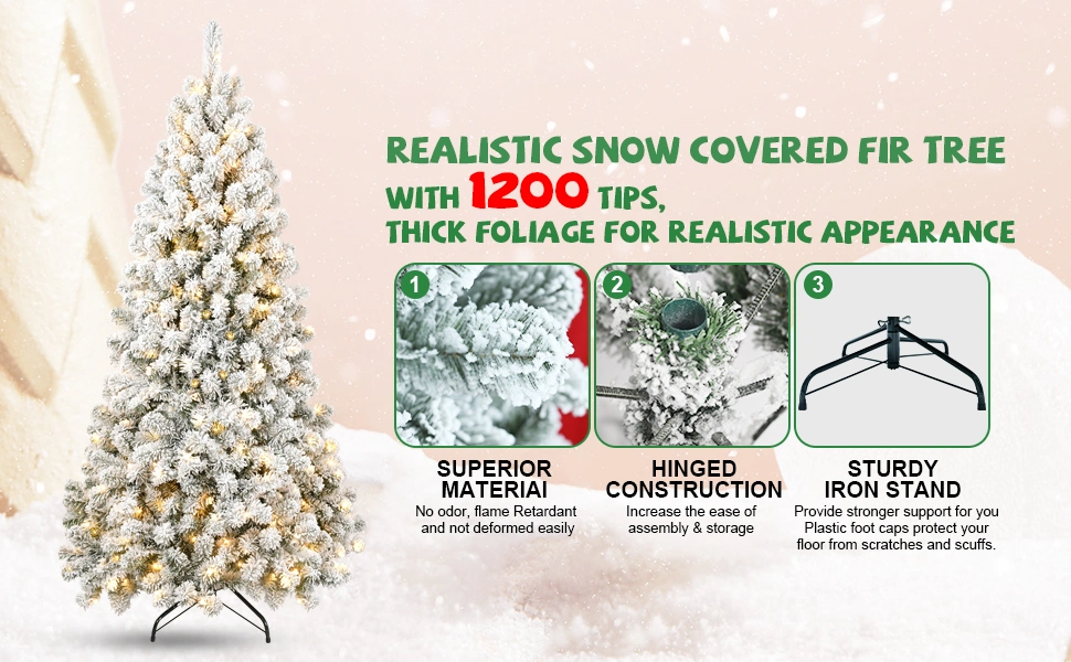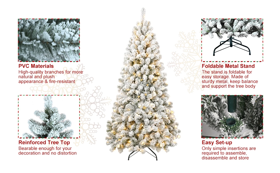 5ft Pre-lit Flocked Artificial Christmas Tree Environmentally Friendly Fireproof Artificial Christmas Flocked Tree